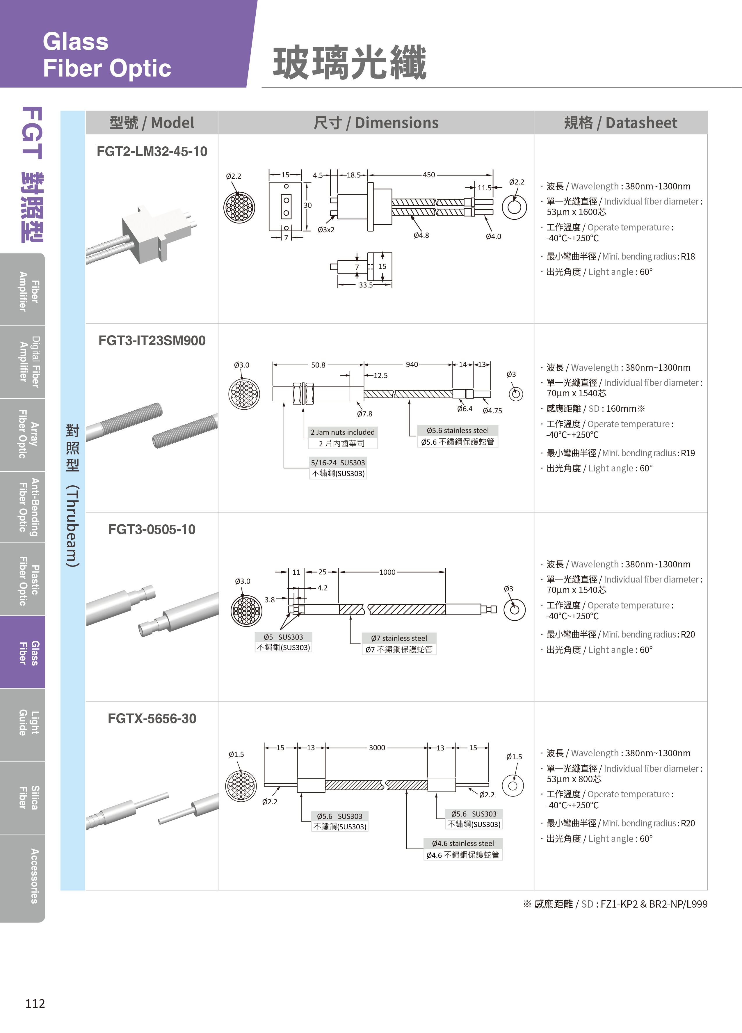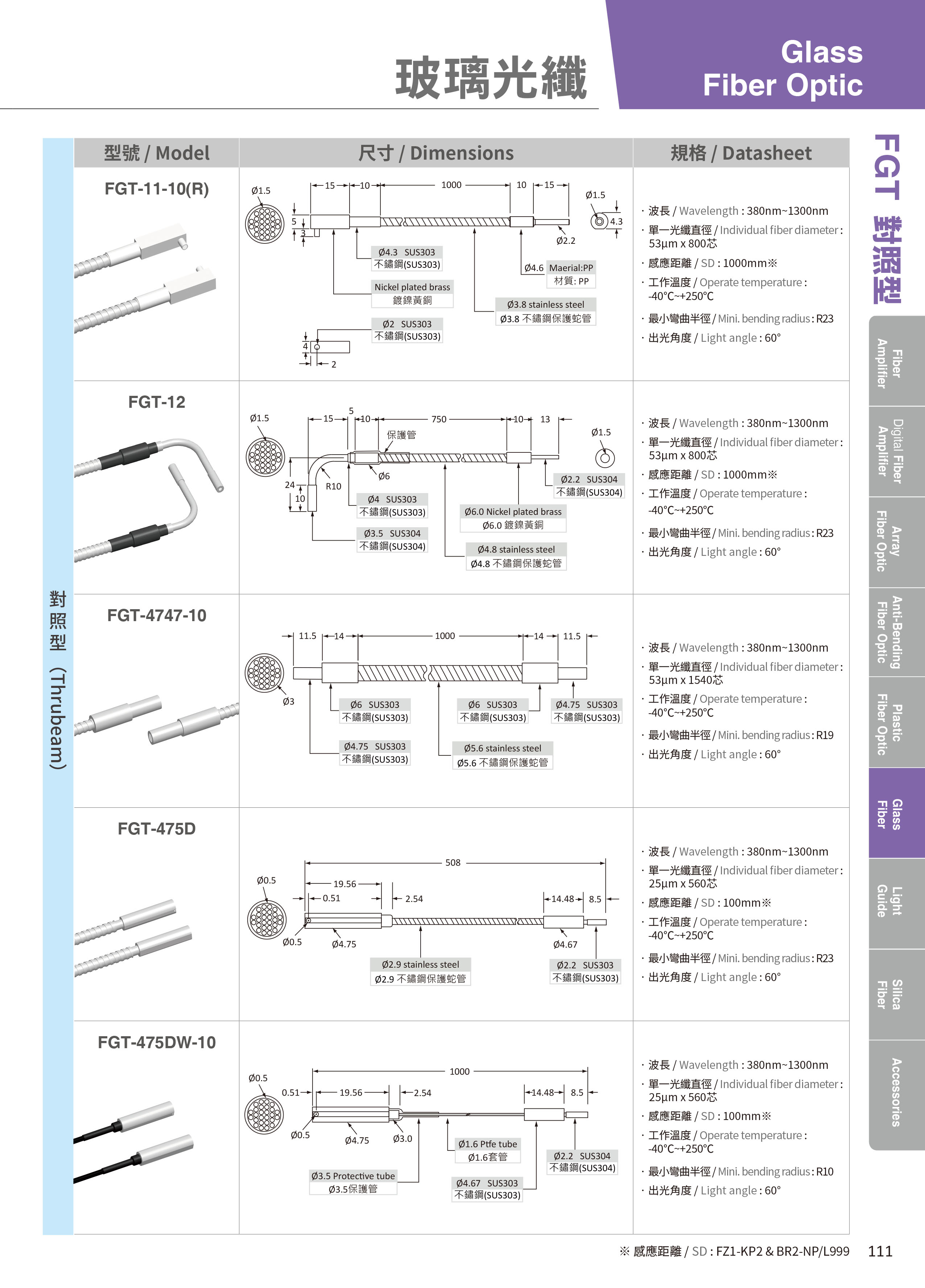 对照式 玻璃光纤列表